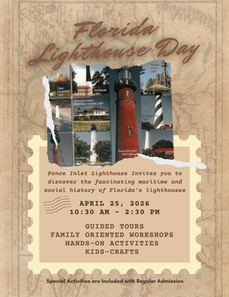 Discover the fascinating maritime and social history of Florida’s lighthouses during Florida Lighthouse Day. Climb to the top of Florida’s Tallest Lighthouse and enjoy family-oriented workshops, hands-on activities, guided tours, and kids-crafts between 10:30am and 2:30pm. All activities are provided free of charge with your regular paid admission!
