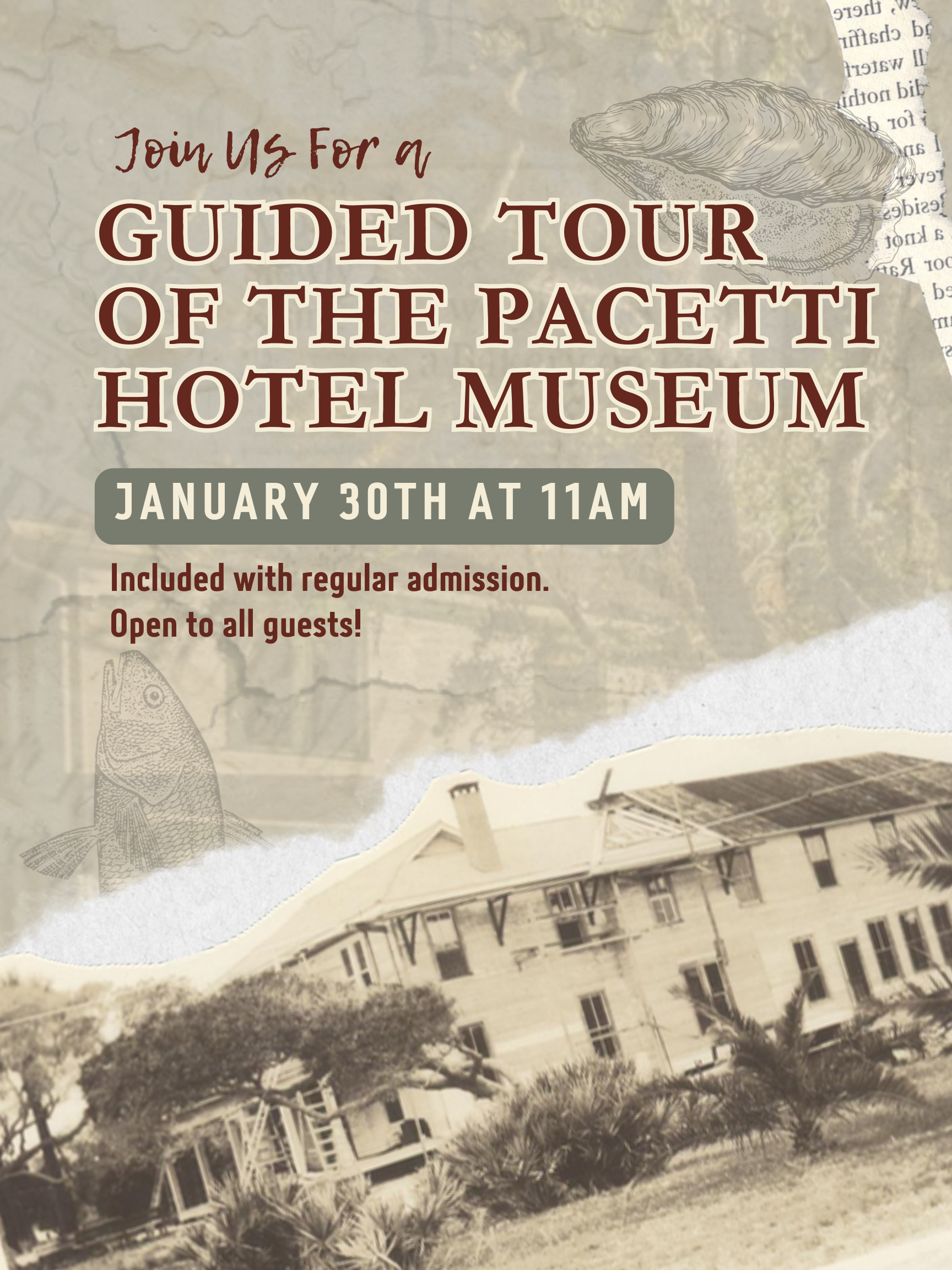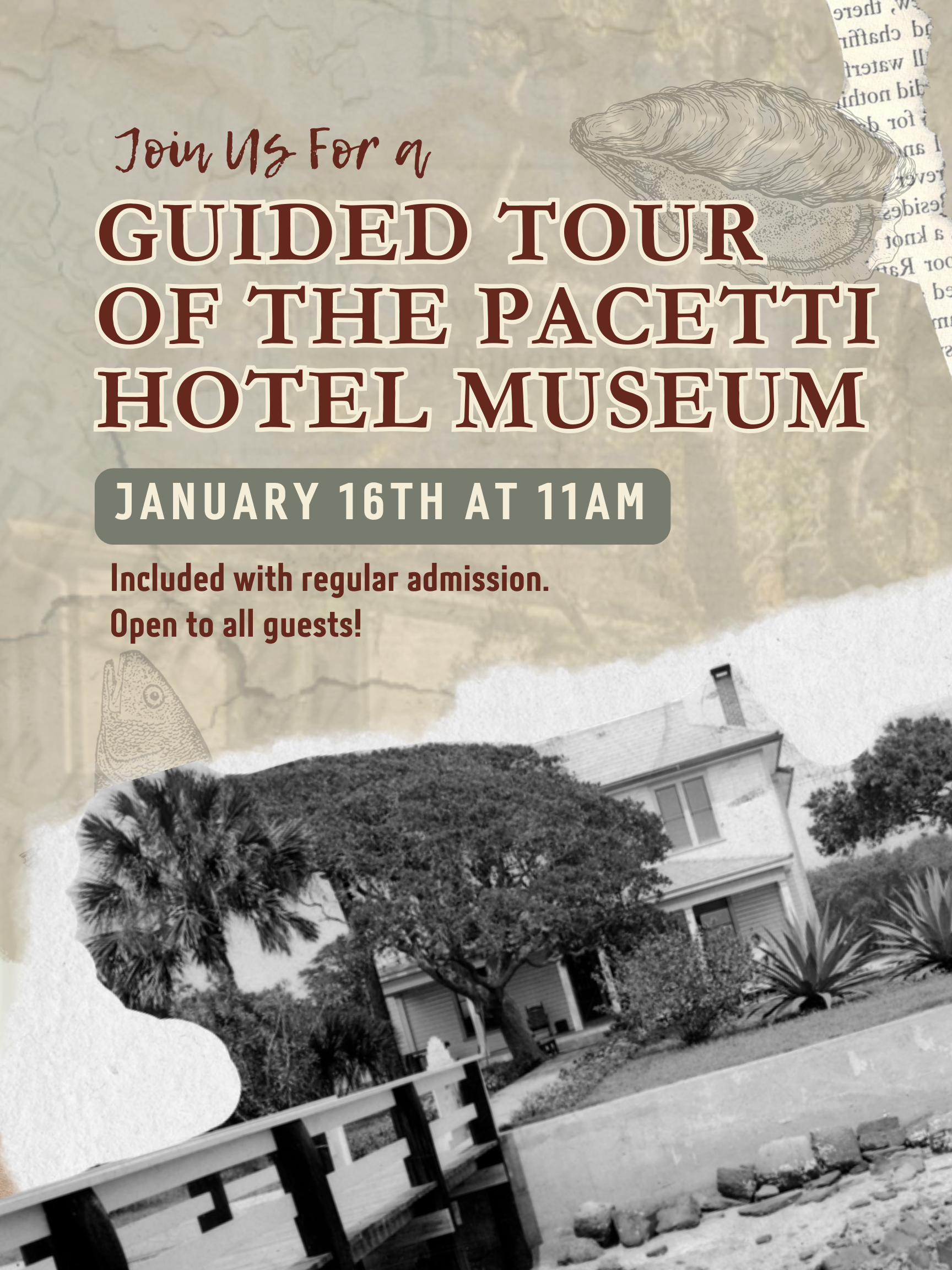 Discover the heart of old Ponce Inlet this new year! Join us for guided tours of the Historic Pacetti Hotel Museum and explore pioneer stories, rare artifacts, and the rich heritage preserved inside this 19th-century landmark. Included with regular admission!